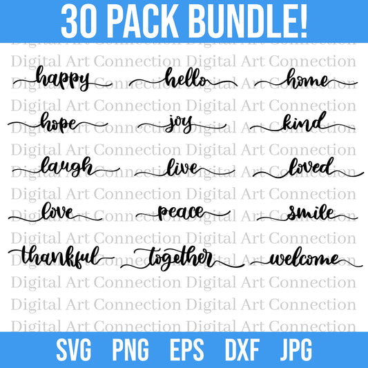 30 Pack Calligraphy Words SVG Bundle